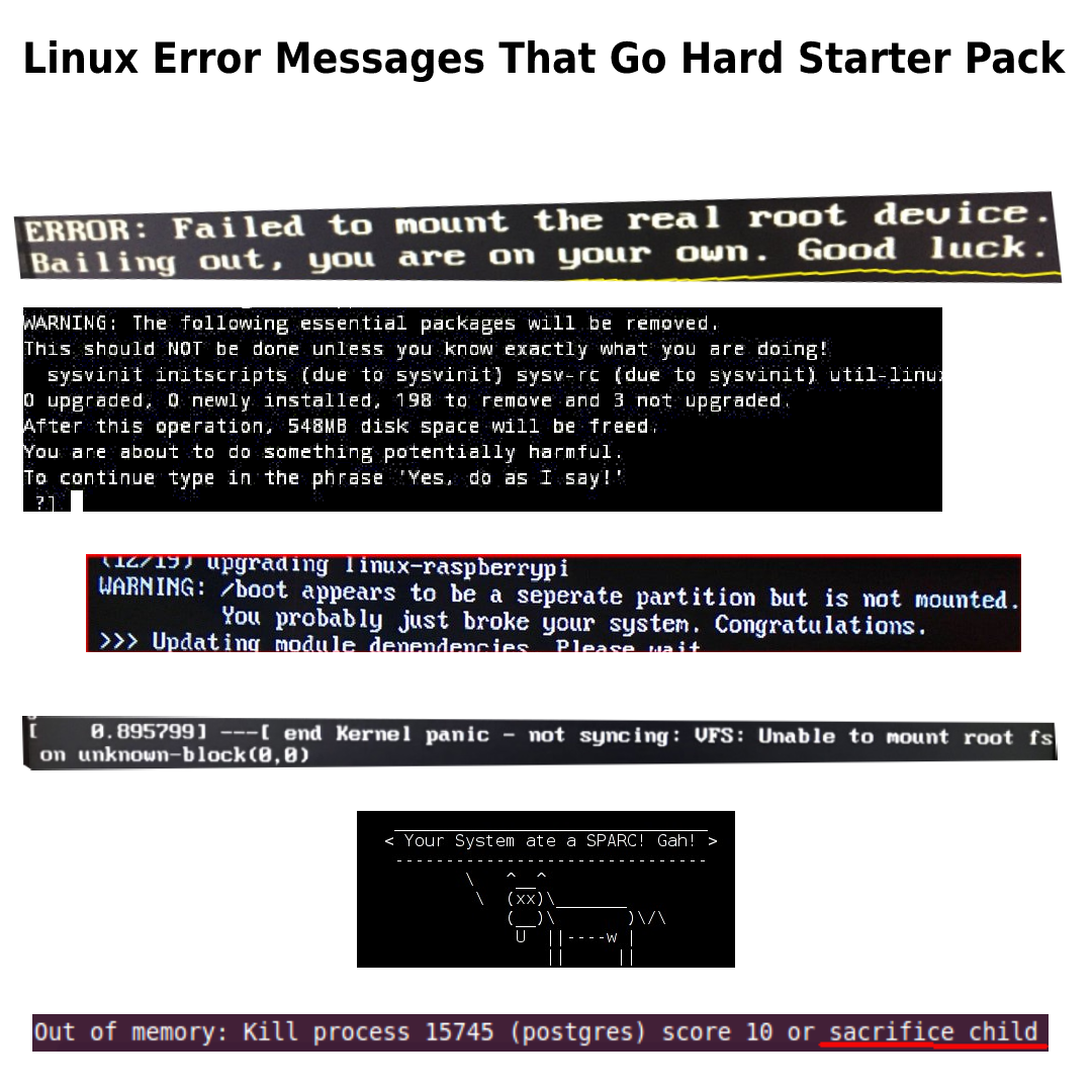 Linux error messages that go hard starter pack