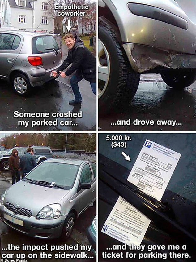 Wellthatsucks: They gave him a ticket because a car hit him and pushed him onto the curb