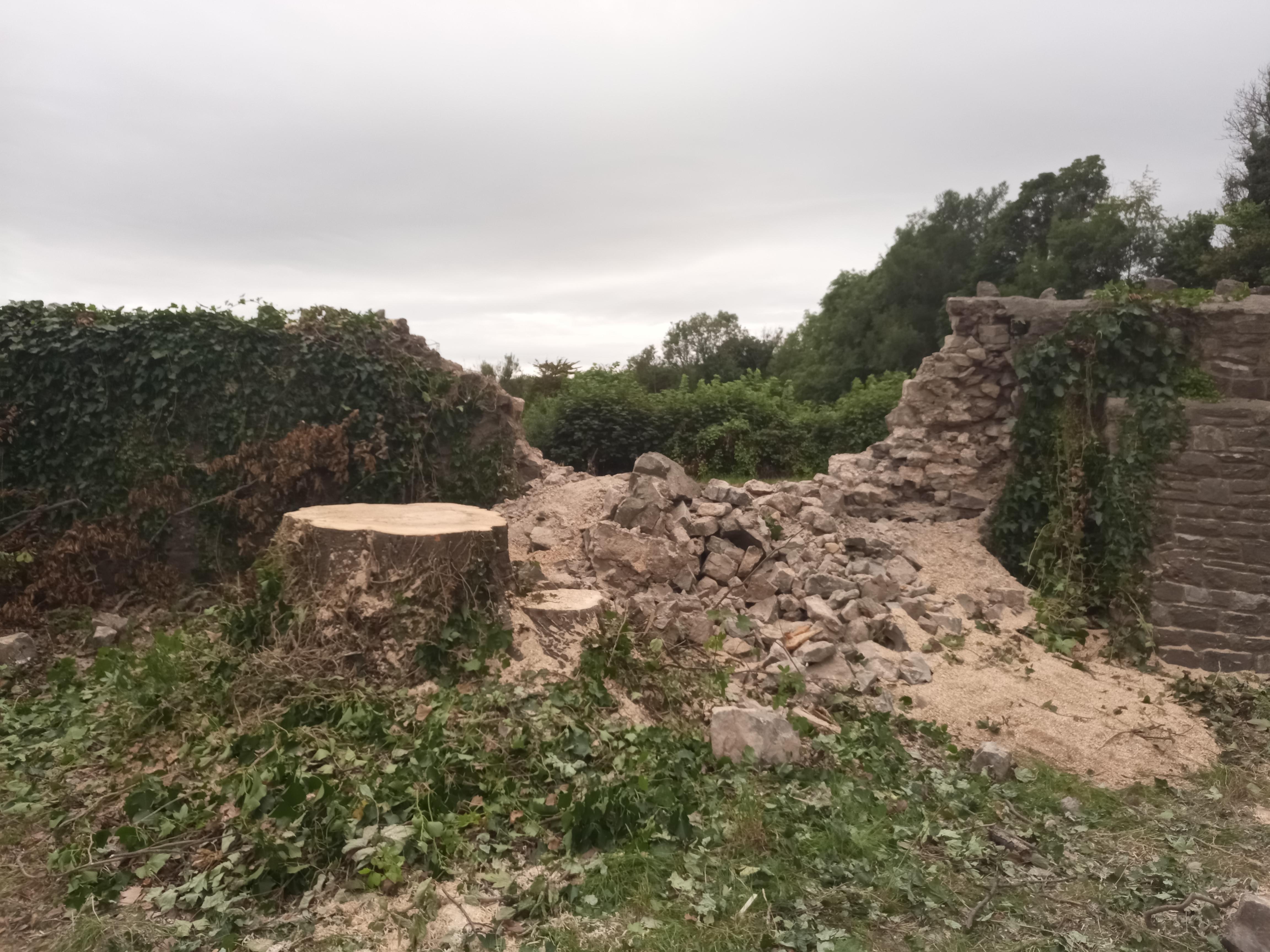 Wellthatsucks: They felled a tree to protect the wall. The tree had other ideas.