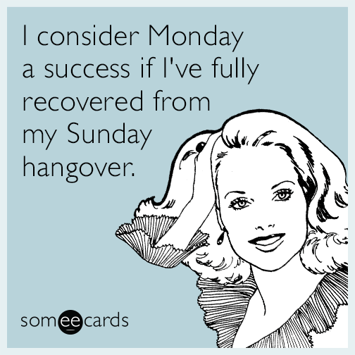 I consider Monday a success if I've fully recovered from my Sunday hangover.
