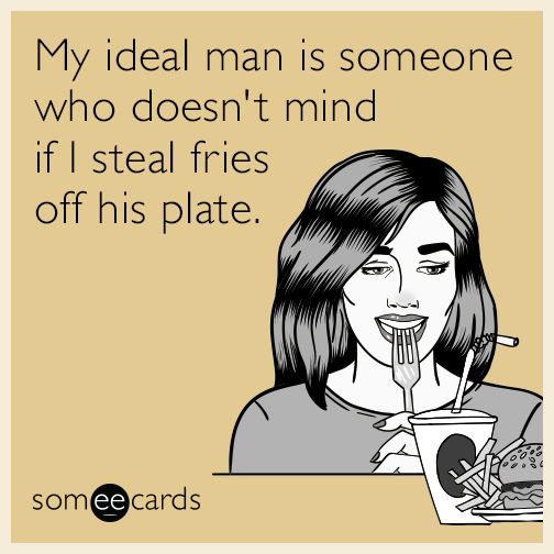 My ideal man is someone who doesn't mind if I steal fries off his plate.