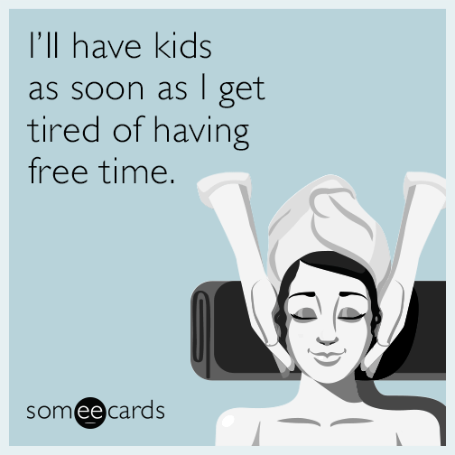 I'll have kids as soon as I get tired of having free time.