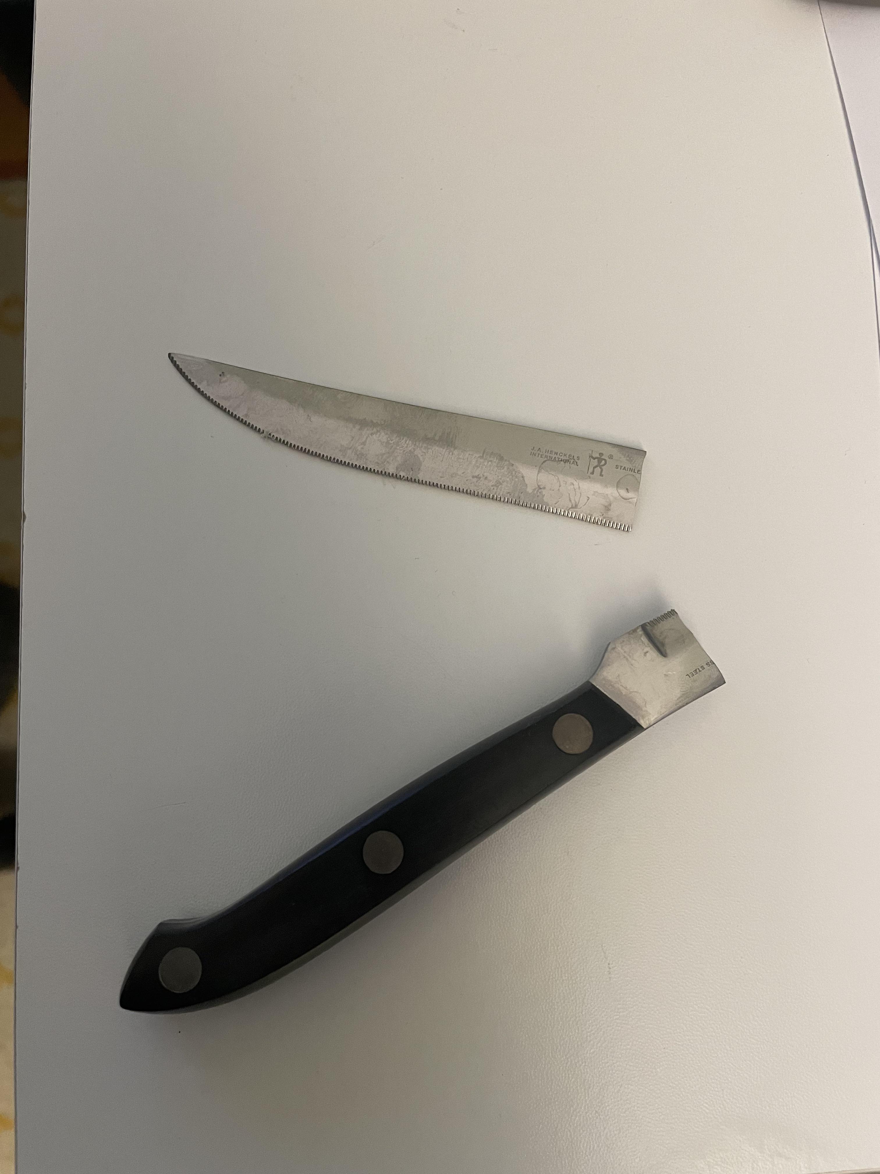 Wellthatsucks: All I did was drop the knife from the counter to the tile floor.