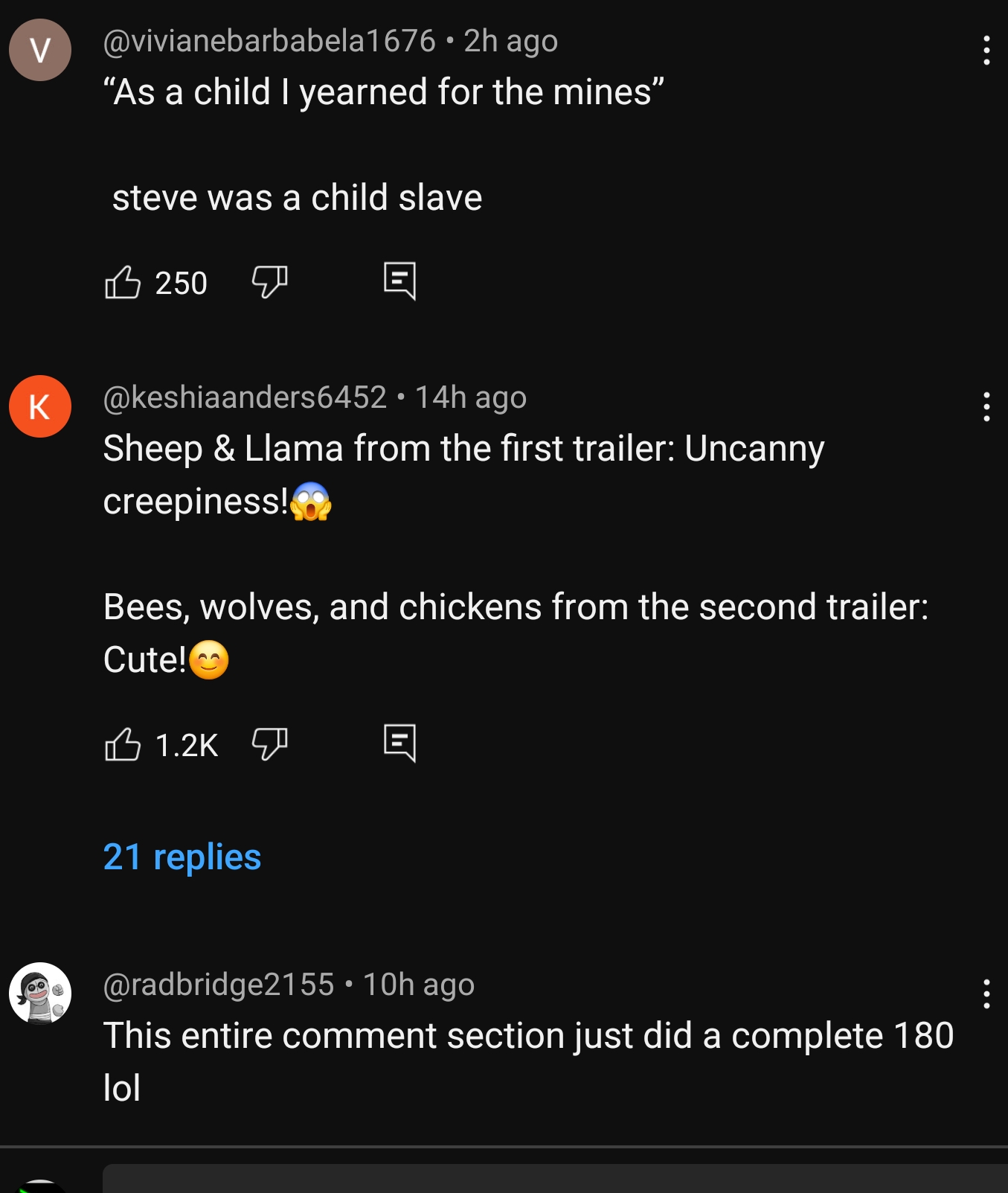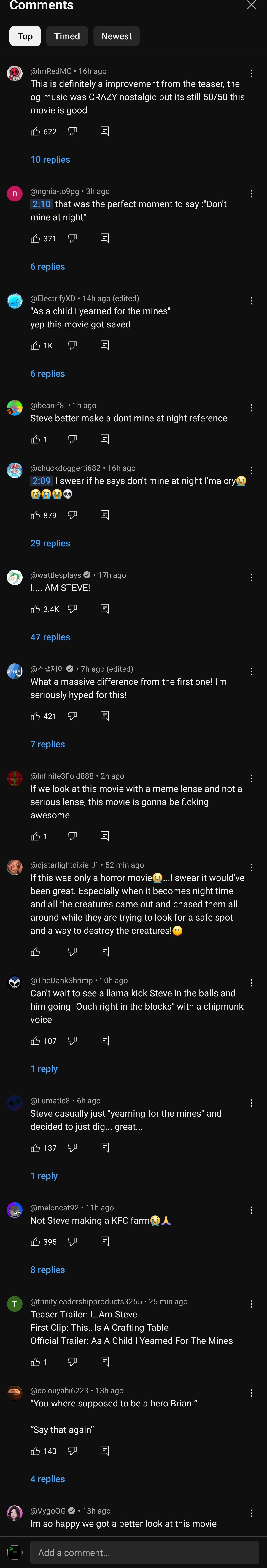 Minecraft trailer comments 2