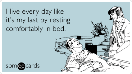 I live every day like it's my last by resting comfortably in bed.