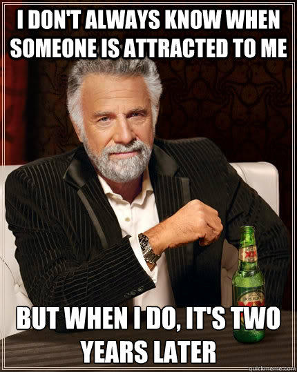 I don't always know when someone is attracted to me but when I do, it's two years later