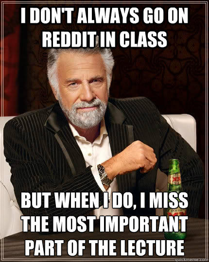 I don't always go on reddit in class but when I do, I miss the most important part of the lecture