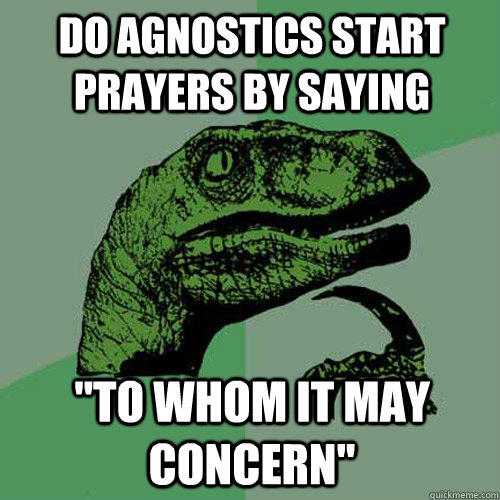 do agnostics start prayers by saying "to whom it may concern"